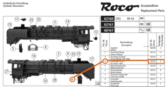 4. Cenu za náhradný diel zistíte podľa cenovej skupiny (Preisgruppe) z produktového listu náhradných dielov a nasledovnej tabuľky (na stiahnutie súbor PDF 47 KB, stĺpce Preisgruppe NEU a Preis). Napríklad k produktu 62161 (Dampflokomotive BR 44 der DRG) náhradný diel 4 pozícia = 92378 (Luftpumpe rechts) cenová skupina 5 má cenu 1,40 €. |