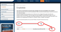 3. V produktovom liste náhradných dielov si vyhľadajte požadovanú položku (Art. Nr. napríklad 92378) a jej cenovú skupinu (Preisgruppe napríklad 5). V e-mailovej objednávke uvedte číslo položky (Art. Nr.), počet kusov a všetky kontaktné udaje tak ako pri objednávke z I-shopu (meno, priezvisko, ulica, číslo domu, psč, obec, e-mail, telefón, mobil). Bez týchto udajov nebude objednávka akceptovaná. |